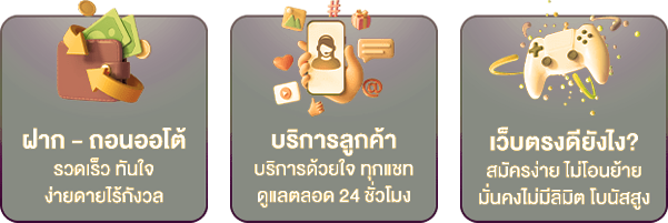ตอบ : - มีโปรโมชั่นเยอะ ฝาก-ถอนรวดเร็ว รองรับการเล่นผ่านมือถือ มีทีมซัพพอร์ตดูแล 24 ชั่วโมง และมีความน่าเชื่อถือสูง